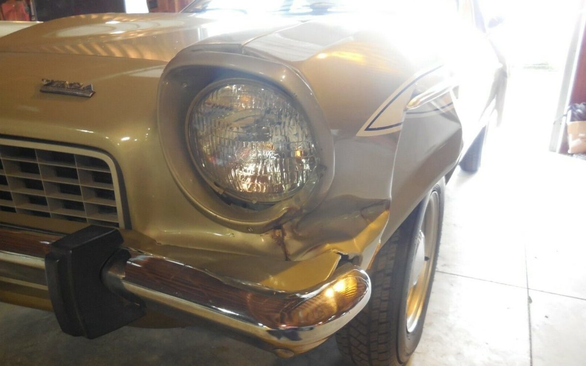 There is a little more than just a bent fender. Other than damage the body is quite nice but 7K nice I don’t know. Must want to build a Vega pretty bad. Not too many to V-8 now a days, so….