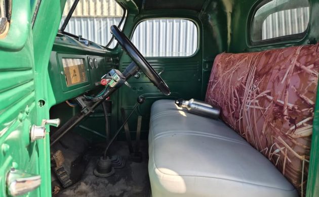 International Harvester was best-known for its agricultural equipment, but it carved a niche in the medium and heavy truck segment starting in the 1920s. The K series was introduced in 1940 and updated to the KB in 1947. Between the two series were more than 40 models ranging from 1/2 ton up to the KB14, in a variety of chassis and bed lengths, optioned with a dizzying array of job-related add-ons. International’s market share slipped during the late ’40s despite a keen population of buyers. Its theory of renovating its models is illustrated by the K to KB transition, which involved a new winged grille and badging – that’s it, and it wasn’t enough for the times. This truck is powered by a Green Diamond 233 cu. in. six-cylinder, capable of just over 90 hp. A floor-shift four-speed manual puts power to the wheels. The seller indicates he “went through the engine”, rebuilt several components, and converted the mechanicals to 12V. The truck has an electric fuel pump and always starts. The dump bed works well. The best news is that the truck has seen regular ranch use with the current owner.