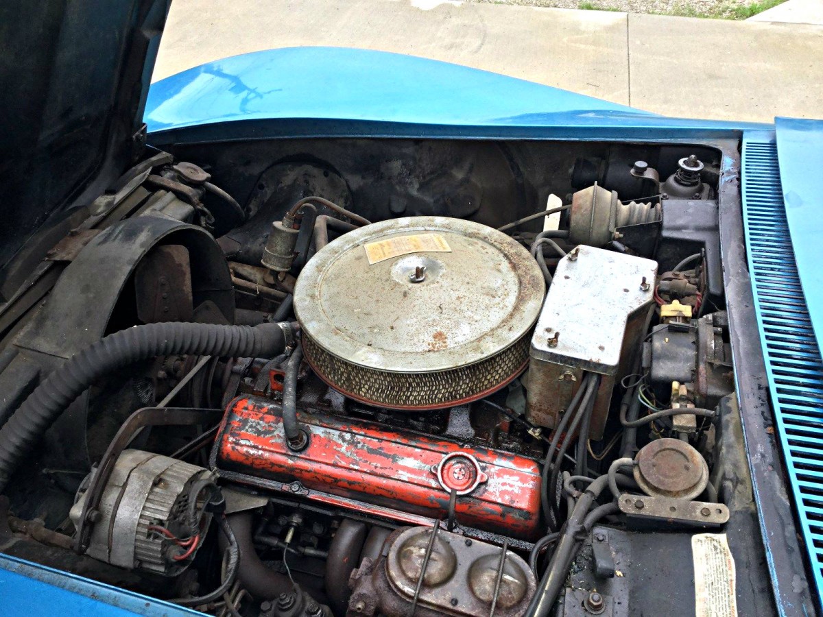 Powered by a 350 V8 and a Turbo 400, this is an easy to drive classic. Claimed to be original, the engine is a bit grimy and could stand a mild cleaning and tidying up. There is also a fair amount of what looks to be oily residue and dirt on the cooling fan, and the fan shroud and engine bay are dirty as well. Although this is a lower mileage car, the engine compartment doesn’t exactly reflect the mileage. While nothing looks particularly bad, a solid cleaning and detailing is in order for this Stingray. Although a healthy runner, this Chevy still needs some brake work and possibly some other attention before hitting the streets.