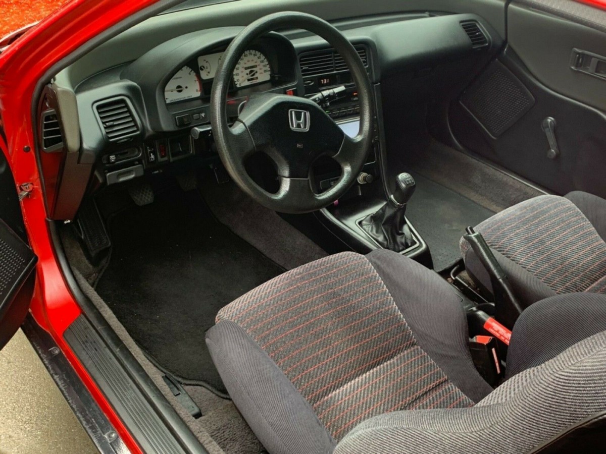 Rio Red paint adorns the body of the compact, and while this color often ends up faded, the seller does mention that a past owner repainted this CR-X at some point in its past. Also, the only noticeable change to the exterior of the vehicle is a pair of clear front corner lights, and the vehicle does utilize newer shock absorbers.