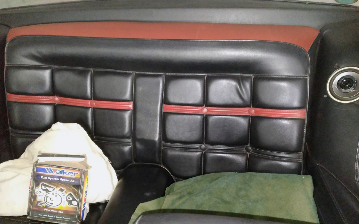 The special Ghia interior looks almost like new; those seats are fantastic! This era of the early 1970s had a few things going on at the same time to create this car and others like it. Personal luxury cars were big, and once Ford pounced on Ghia (as in, buying the majority of their shares), it was game on. Fashions and the gas crisis were two other seemingly unrelated factors that went into the all-night design brainstorming sessions in Ford’s studios. Other car companies were also trying to stand out with special editions, but fuel-efficient ones. As expected, the back seat looks great, but it’s a bit of a storage area. We don’t get to see inside the trunk or any underside photos, unfortunately.