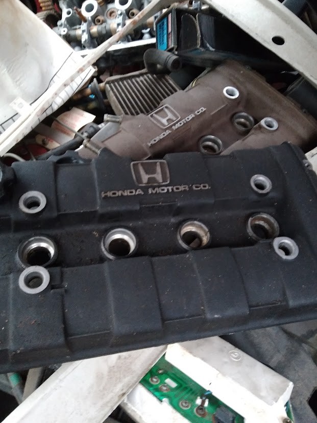 Interior photos show the cabin of the Integra to be in clean, stock condition with the original and very nicely bolstered Integra seats still in place and in seemingly good condition. The seller does not want to sell things piece-by-piece; he wants all of the parts and both cars to go at the same time. The photos below show a wide assortment of parts, from what are presumably the original engines pulled out of the Civic and the Integra to numerous replacement spare parts and racing equipment like fuel cells and boost controllers. The seller hasn’t pulled together a line-by-line breakdown of what he has, but it’s safe to say there’s likely enough to put at least one of these early Honda and Acura products back on the road.
