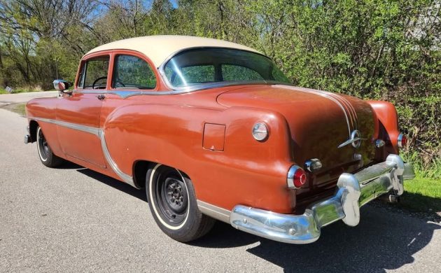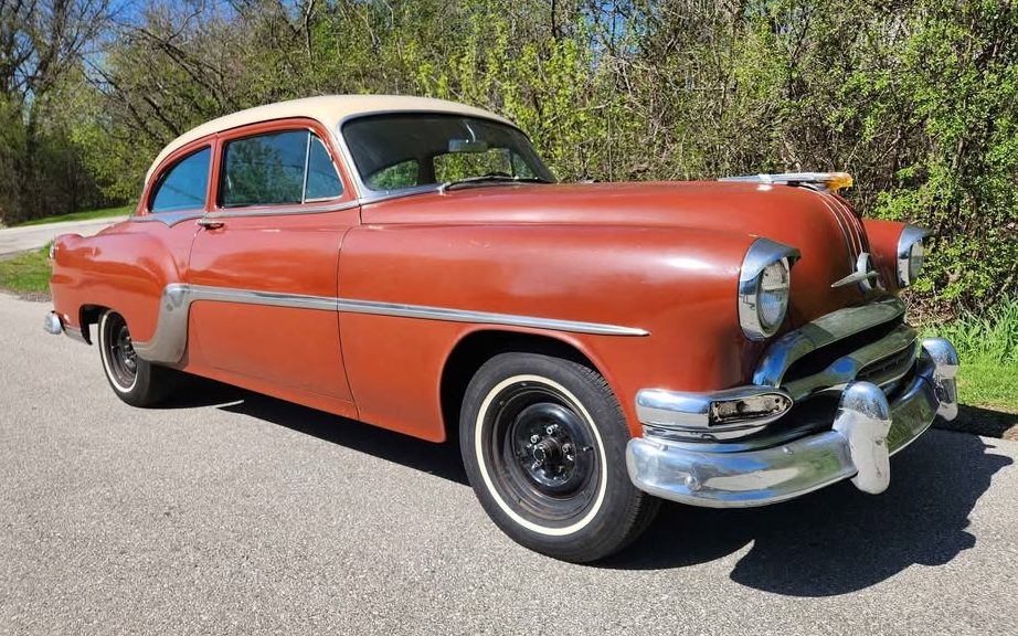 This 1954 Pontiac Chieftain Deluxe is down-to-earth in more ways than one. First, it’s a sturdy and reliable piece of transportation, an unassuming two-door sedan that will never raise the eyebrows of the local constabulary or give pause to your girlfriend’s dad. Second, it literally spent 12 years on a hoist in a storage shed. These days, it “runs and drives down the road” and is ready for a new owner who appreciates the finer points of a smooth idle. (It’s a straight-eight car with a video of the engine idling as proof.) Our friend T.J. has branched out to shed finds and pulled this one from Marketplace in New Berlin, Wisconsin. It’s been for sale for about a week, and the seller has thus lowered the price from $6,500 to $6,200. That’s not too bad for a seemingly solid old Pontiac that may help you slow down and enjoy a more relaxed mode of driving.