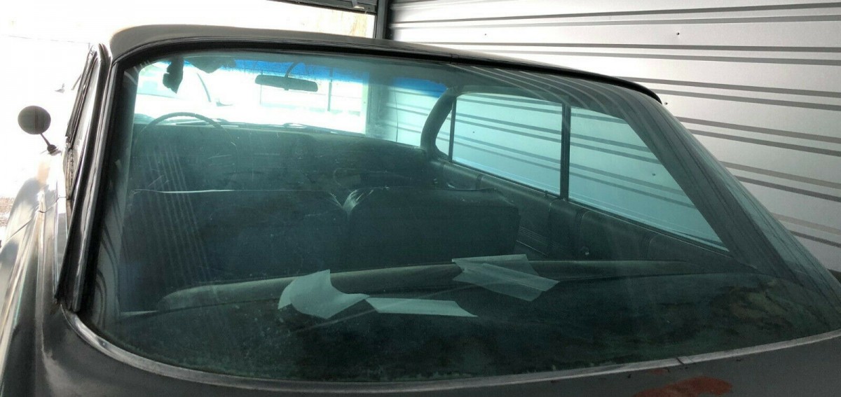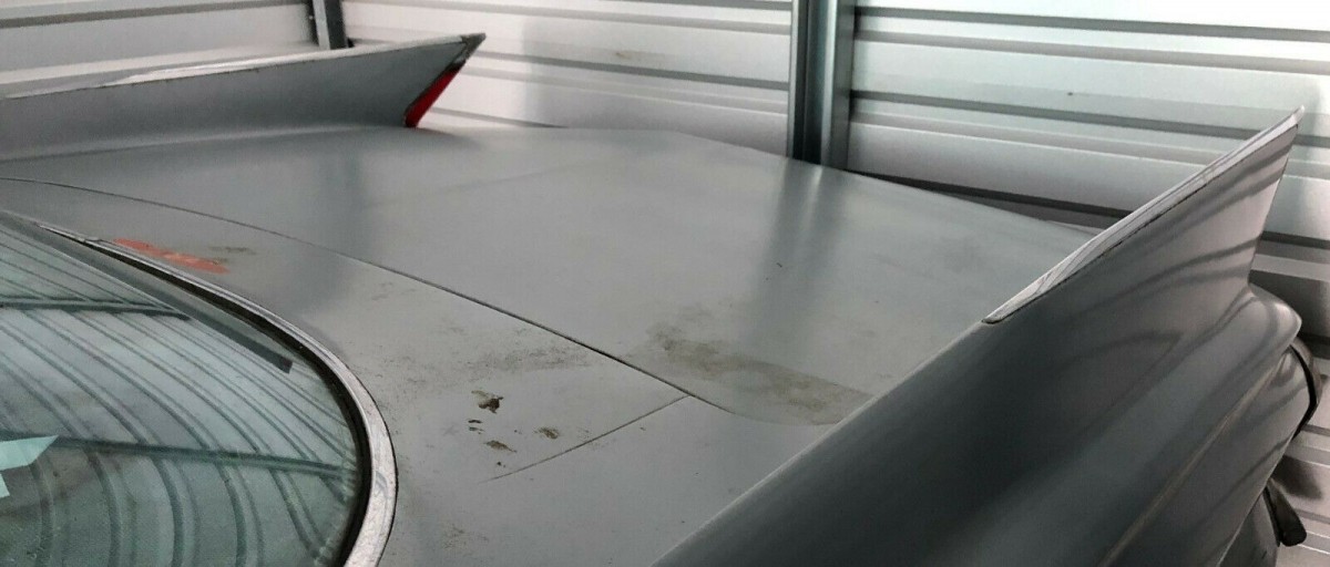The Coupe de Ville looks fairly good overall. There are a few little dings here and there and the silver paint is quite decent in many places, except for the trunk lid which has some surface rust and maybe a stain. The glass and chrome also look quite presentable, so perhaps just a good detailing would suffice for now. The rear fender skirts may be missing, or possibly they’re inside that trunk we don’t see.