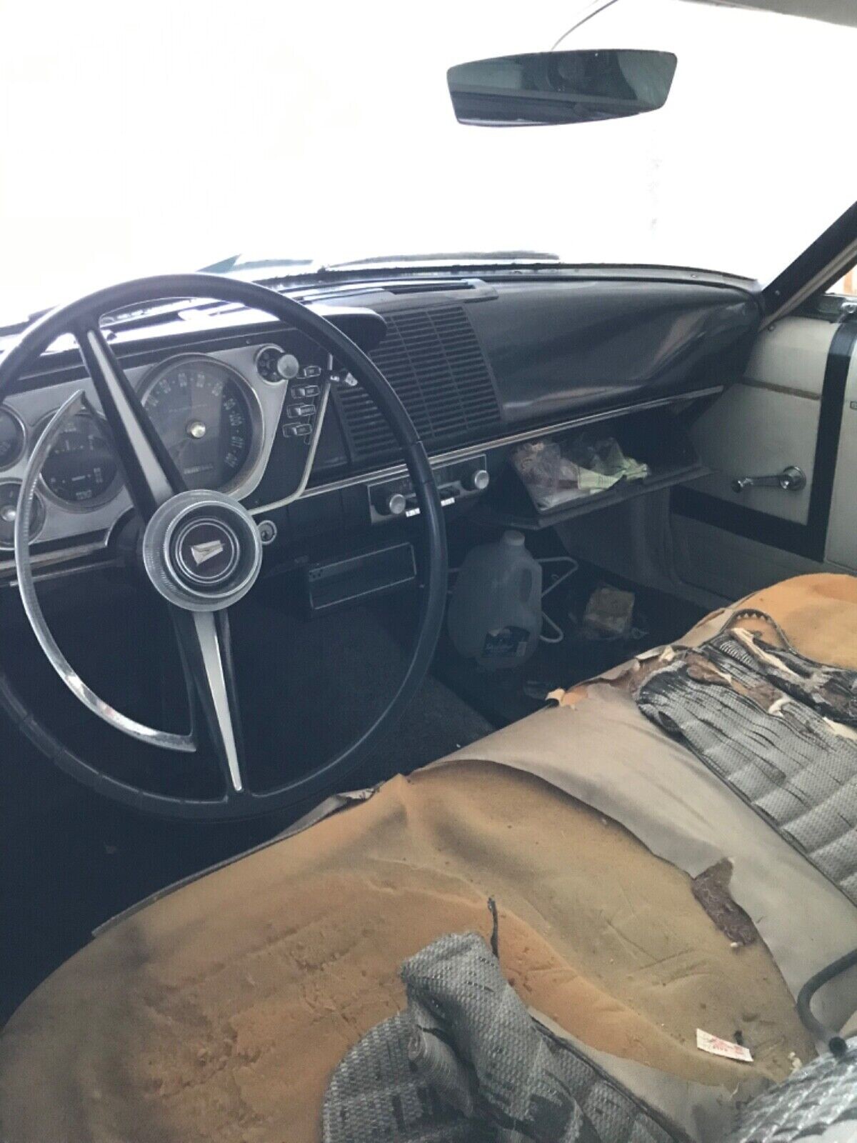 The last time this example motored down the road was fifteen years ago. Multiple V8s were offered in 1963 – anything from a 318 CID to a 382 CID, with output ranging from 230 to 330 hp. Late in 1963, the massive hemi was introduced, changing the muscle car landscape forever. Anyone know which engine is present here? The transmission appears to be the three-speed TorqueFlite pushbutton automatic.