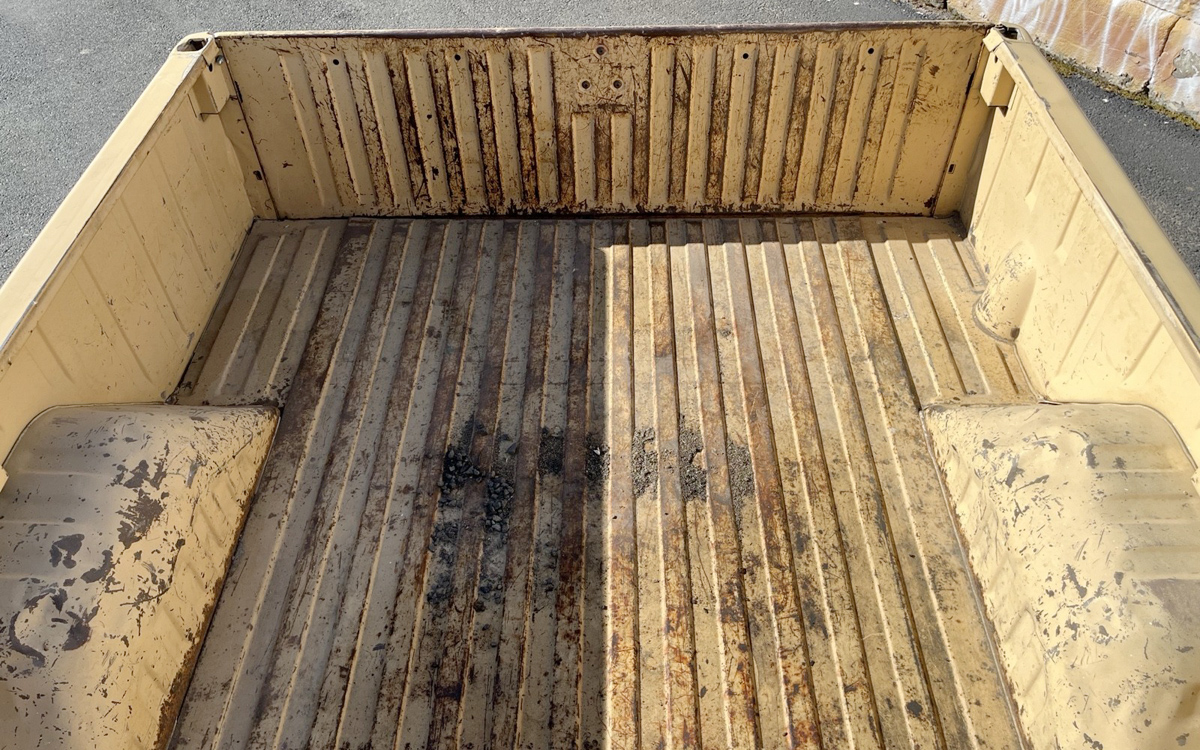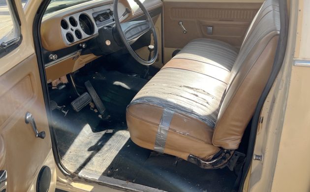 Then there’s the driver’s side, ouch. “Only has a few minor defects/dents that could be easily straightened.” What am I missing? It looks like a nightmare of dents and creases to me, but maybe not? Dents and all, it does look solid as far as rust goes. I love the seller’s optimism, though: “large dent on rear driver’s side fender (full replacement bed side panels are available at a low price. or the existing sheetmetal could be straightened.) -has a few other shallow dings & dents here & there, but overall has very nice sheetmetal!” It just looks like it’s been used pretty roughly for a very long time to me, unless all of these dents and creases happened on a single event; otherwise, why not fix them as they happened?