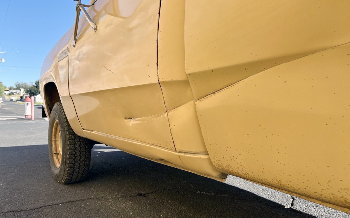 The engine bay looks incredible compared to the rest of the truck! Has it been hit with a spray gun in there on the firewall and other areas? Maybe not, and who cares? I know I’m being overly-critical, and I love Dodge pickups, so I need to let the beat body go and concentrate on the good parts. Like the 318-cu.in. OHV V8 with 135 horsepower and 235 lb-ft of torque when new. Power is sent through a transfer case and TorqueFlite automatic to all four wheels. It’s been in storage since August of 2025, which is also when they bought it from the original owner. It’s said to run and drive well, but “sometimes has some smoke from the exhaust, perhaps due to a weeping valve seal.” Any thoughts on this well-used Dodge 4×4?
