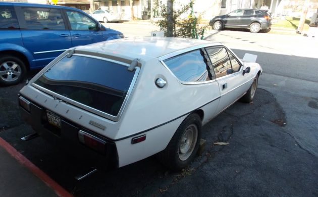 Pictures don’t do these cars justice. In the flesh, they’re exotic looking as anything from Maserati or Lambo. Awkward, mind you, but exotic. Given the rough shape, I don’t see a future for this one as anything but parts.