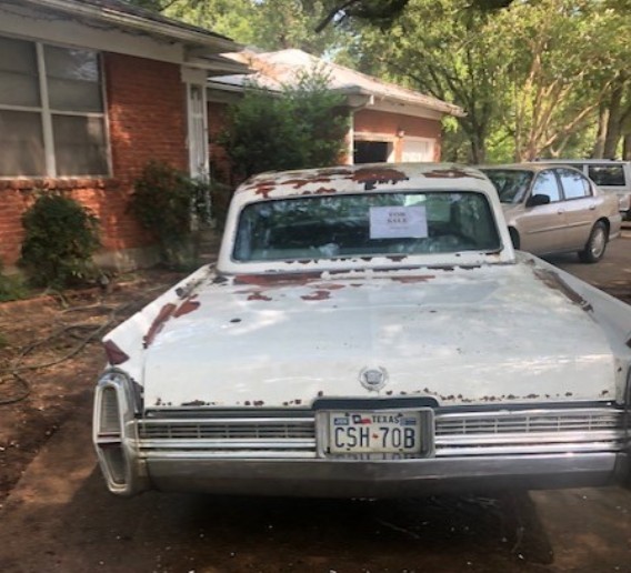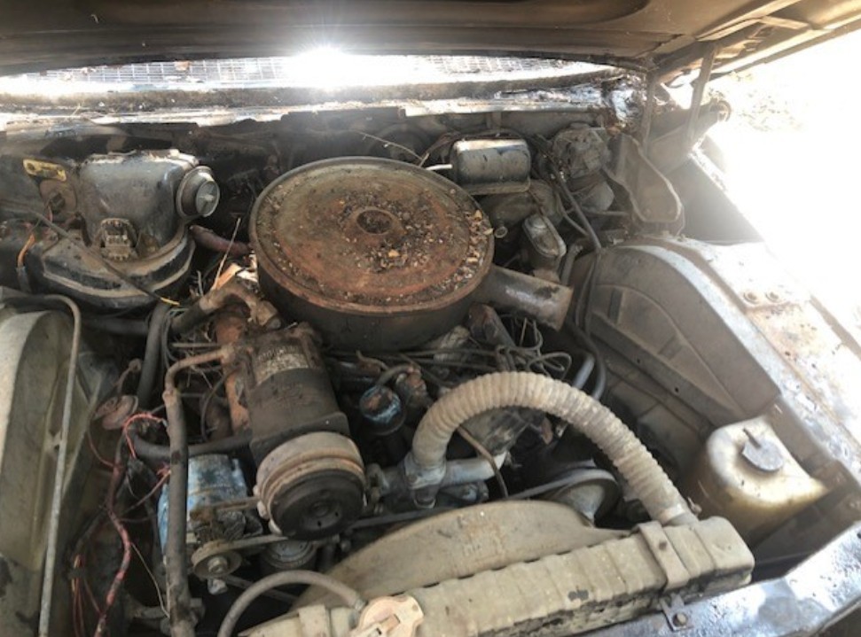 Though reported mileage on this Caddy is under 52,000, we’re told the engine was completely rebuilt in 1989 with maybe 25,000 miles added since. It was running 15 years ago but will need some coaxing to do so again. A battery and a starter are needed for certain, followed by tires, hoses and belts, a tune-up, and the like. That’s just to get it back on the road. Under the hood resides Cadillac’s big 429 cubic inch V8 with a TH-400 automatic transmission.