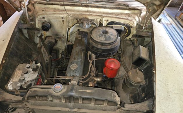 From what we’re told, this Bow-Tie was last started in 2007. So, it’s safe to assume it will need work now, though the 6-banger was rebuilt 10 years before that. This machine must have been a busy beaver in its first 50 years, as the odometer has turned over and still shows 84,000 miles. Somewhere along the way, the car has been converted from a 6-volt system to a 12-volt as that’s the kind of battery under the hood. Needless to say, the ole Chevy will need a new set of tires.