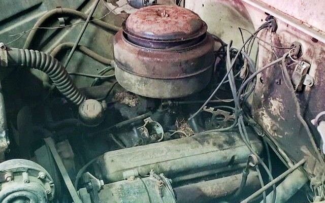 Inside the truck is a green interior which suits the white exterior. The bench seat is ripped and stuffing is falling out, but that isn’t something a seat cover couldn’t temporarily fix while it becomes a rolling project. There are no photos of the bed, but the listing claims the truck is rust free. Thankfully it has been stored indoors so the elements wouldn’t eat it away.