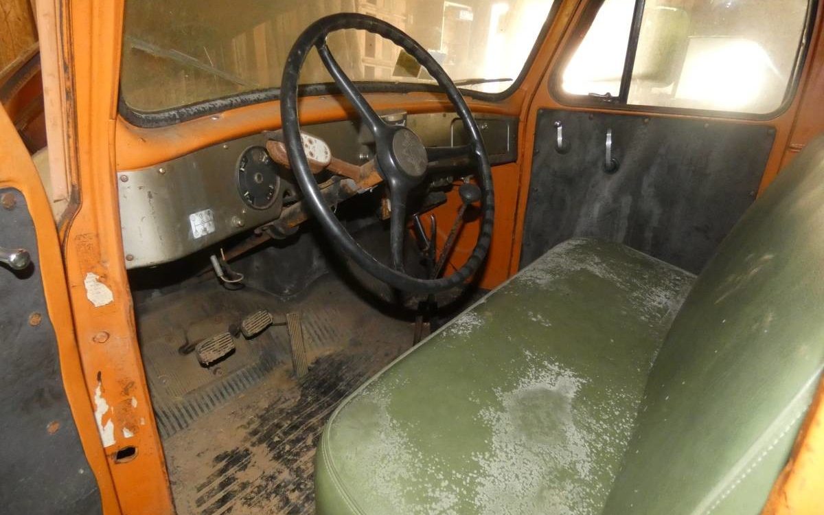The wood bed looks decent. I’m guessing from the modern design of the flatbed with newer lighting that it was fabricated at some point well after 1952. This truck has a factory cargo capacity of 3,700 lbs. If this was my project, I’d be tempted to take off the bed sides and either re-do the wood or convert it to a roll-back car hauler. What about you?