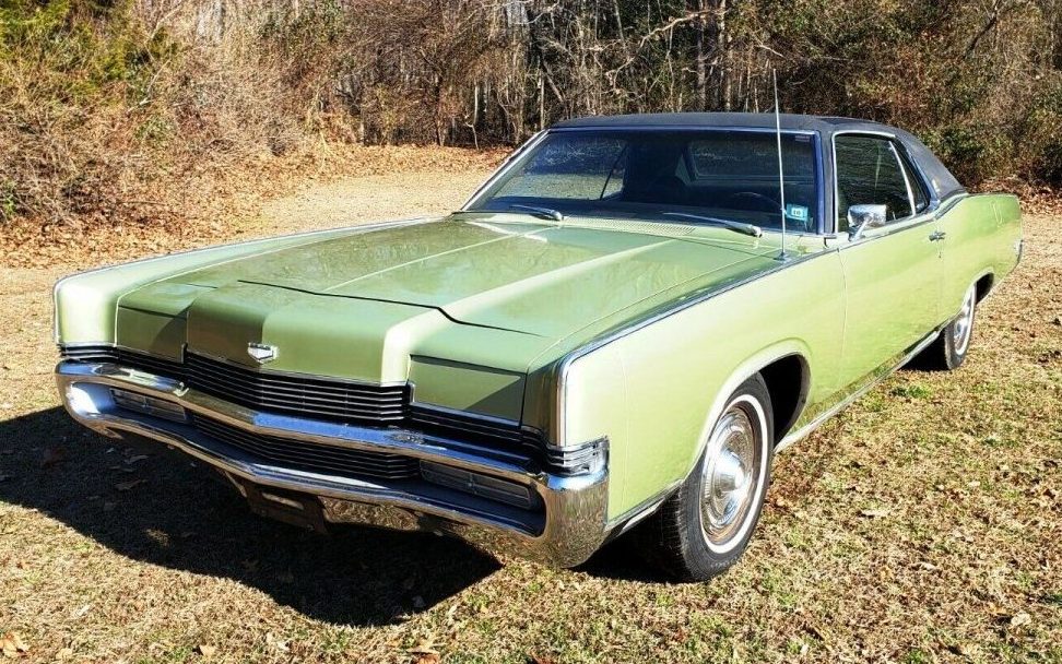 Long before Mercury’s Grand Marquis became a variant of the ubiquitous Ford Crown Victoria, a common police car, taxi cab, and retiremobile of the 1990s and 2000s, the Grand Marquis held a more prestigious position just under Ford Motor Company’s flagship Lincoln brand. This 1969 Mercury Grand Marquis Brougham two-door hardtop in Sicklerville, New Jersey could easily be mistaken for a ’70 Lincoln Continental from a distance. Recently revived after a 25-year slumber, this double-green classic runs, and drives, retaining almost complete originality with a few exceptions. It seeks a new owner here on eBay where $10,500 makes it yours with a click on Buy It Now or tempt the seller with Make Offer.