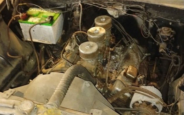 Some sections of the interior are said to have been reupholstered in the nineties, and like the exterior, there’s grime built up on the seats. After a thorough cleaning, the vinyl might still be OK, as I’m not seeing any tears on the front bench. The one door panel we get to view appears quite good, with the instrument panel and dash not looking all that bad either. A non-original item inside is the steering column, with the wheel appearing like it could be from a Chevy truck, so it might be worth considering swapping this for the appropriate unit.