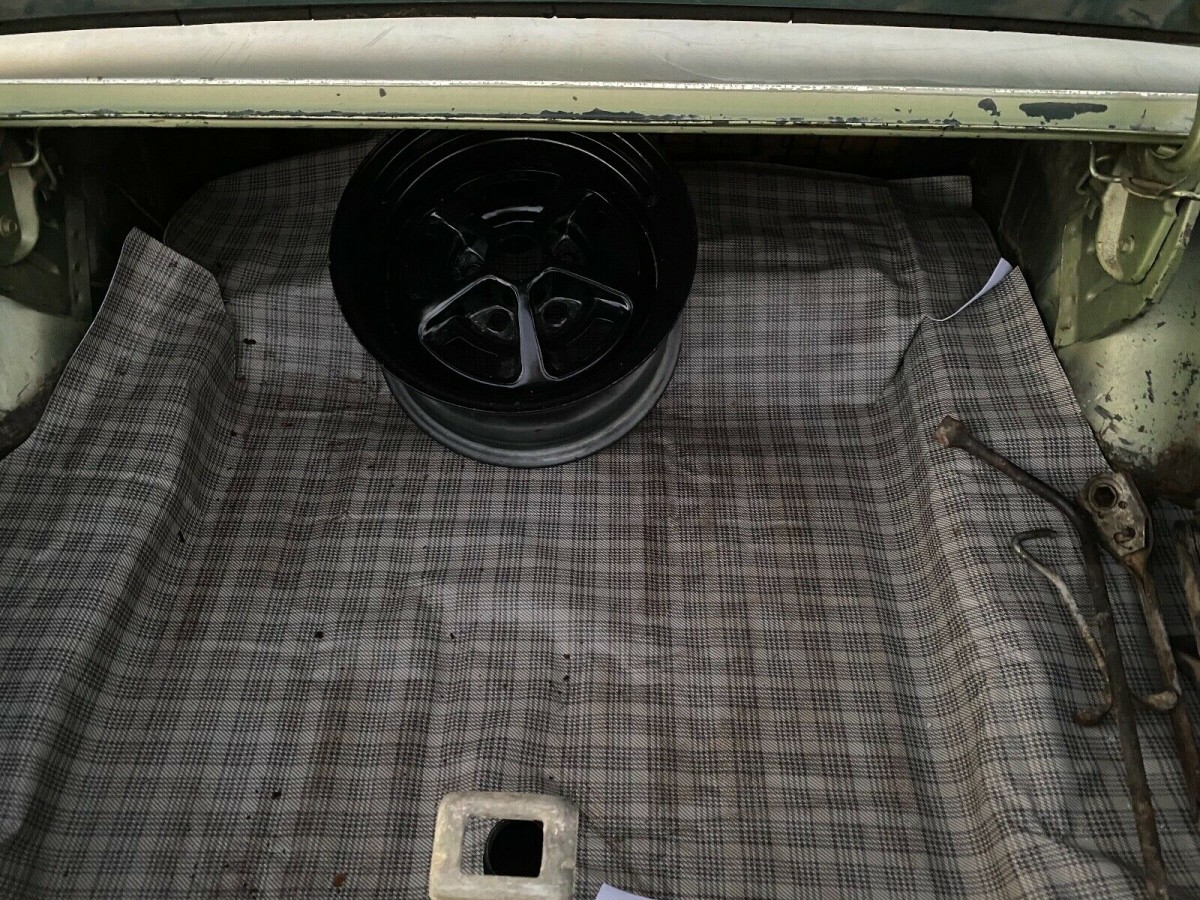The A-Code is indicative of the 289 V8 engine, and this one is the 225 hp version with a 4-barrel carburetor. The seller performed a complete tune-up on the car, had the carb rebuilt, the gas tank removed and cleaned, a new fuel pump installed and painted and detailed the motor prior to starting the car. The car is said to run well, although the fan belt is missing, so that raises a bit of a question. Work was stopped when it was discovered that the freeze plugs were leaking, and the brakes were never redone, so it doesn’t exactly stop. Given the backdrop where this car sits, there seem to be other vintage projects and the seller’s interest has moved on.