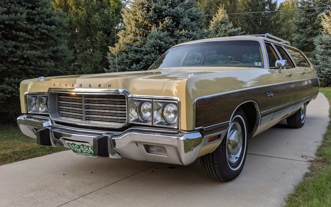 The Chrysler Town & Country was a station wagon that Chrysler built from 1940-42 and again from 1945-88. The name was resurrected in 1990 as Chrysler’s top-of-the-line minivan. For most of its run, the T&C could be had in both Newport and New Yorker trim levels, but the latter was quite common. The sixth generation of the big wagon was produced from 1969-73, using the “fuselage design” theme employed by all the big Chryslers, riding on a 122-inch wheelbase at about 224 inches overall length. During that five-year period, the wagons went largely unchanged until 1973 when those “cow-catcher” 5-mph, federally-mandated bumpers were deployed. They added five inches of length out front and looked like what they were, add-ons.