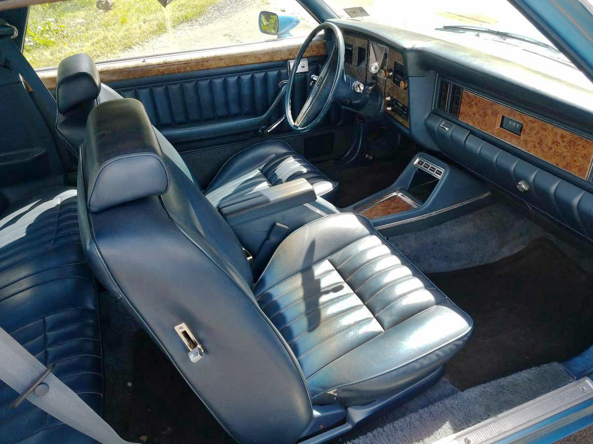 This is one nice interior! The seats look almost like new and other than the faded carpet and a couple of odd areas that hopefully can be cleaned up, this is one comfortable looking place to spend some time. But, all is not perfect, the “wood” on the top of the door panels is cracked on the driver’s side. But, to offset that, this car has power windows! I can’t imagine that a lot of Ford Granadas left the factory with power windows. Maybe more so on the Monarch and certainly on the Lincoln Versailles. This car also has AC but there is no word on if it’s functioning or not. That console sure looks empty without a floor-mounted shifter of some sort, either manual or automatic.