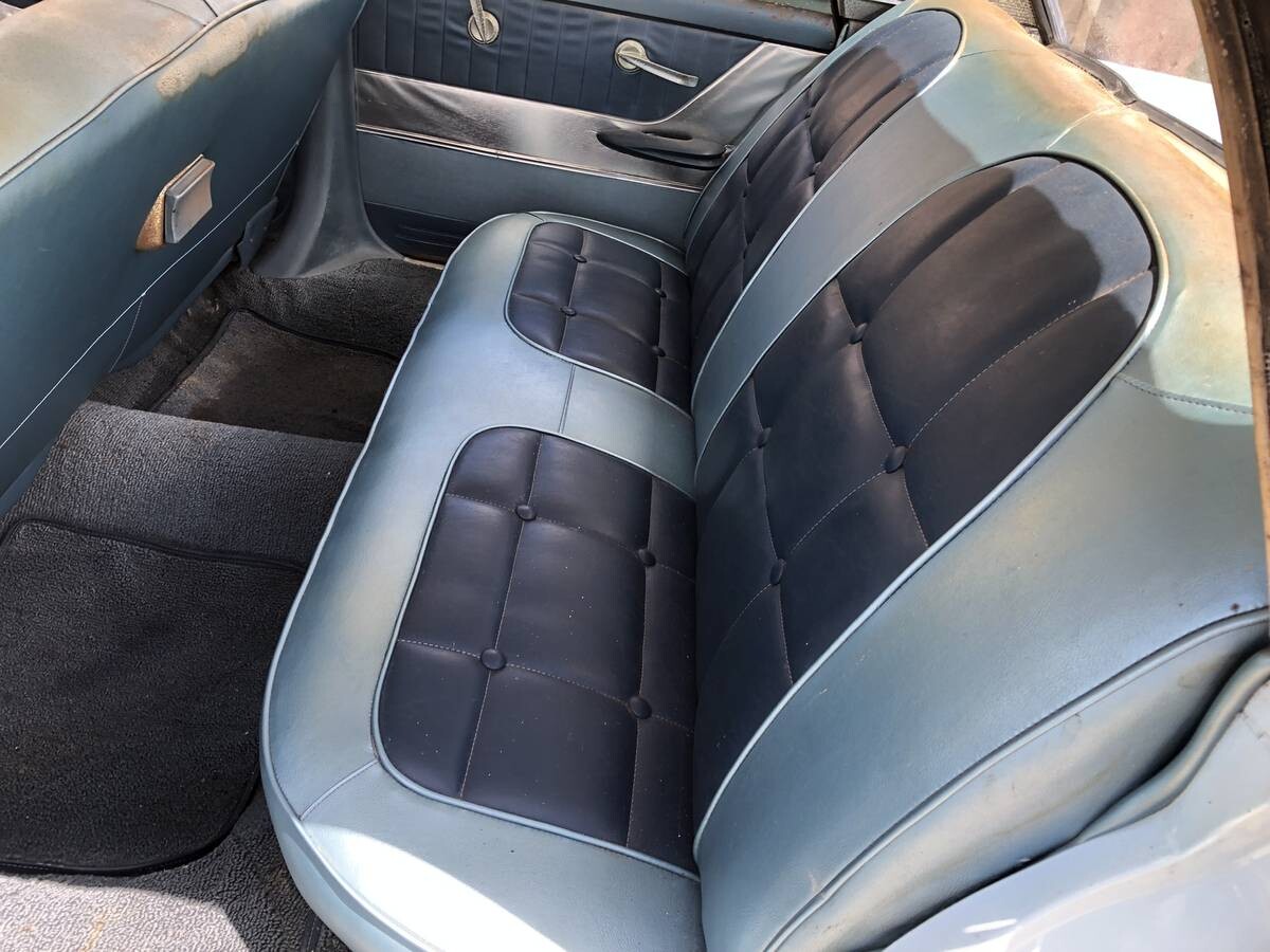 Seats look more like Mercury than Ford at that time. Maybe 63 or 64 Mercury seats? didn’t catch the overspray on doors. Will have to look again. old eyes not as sharp as when I was 20, about 54 years ago. Interior rust, just a thought: under a car cover in Florida driveway? heat ’em up, cooll ’em off, sort of like when the concrete on your driveway “sweats” due to humidity? Like I said, just a thought. BTW, $8500 is to high an ask, $5500-6500 for a 4 door.