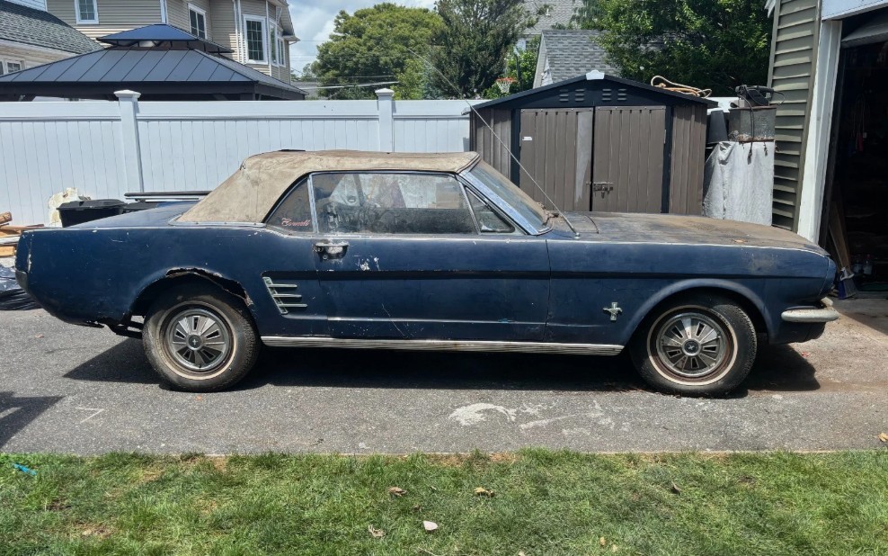 Ford’s Mustang was one of the best-selling cars in 1966, finding more than 607,500 buyers. That was on top of hot sales in 1964 (1/2) and 1965. 12% of customers opted for one of the ragtop versions, of which 56,400 were the “standard” no-frills Mustang. The options list on this pony must have been brief, as a 3-speed manual joined with the little inline-6. This car’s original selected Nightmist Blue paint and that finish has been on the vehicle for 59 years.