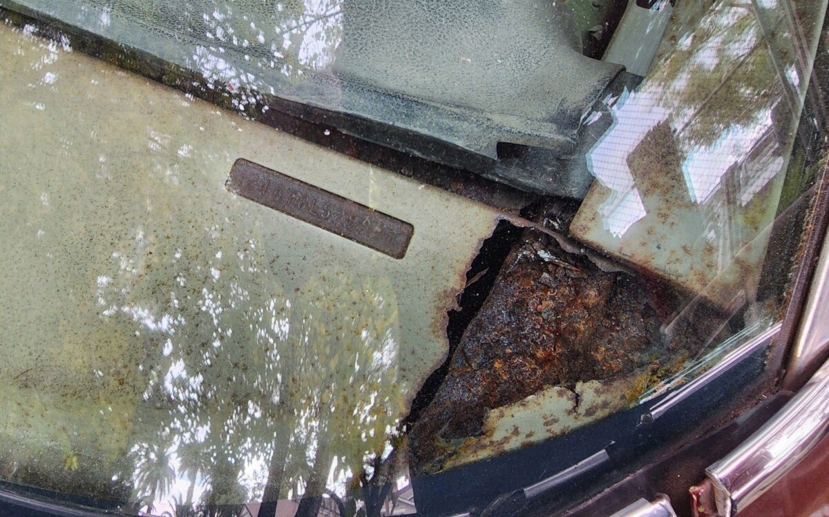 I see a big chunk of rust in the corner of the dash. Not a good sign.