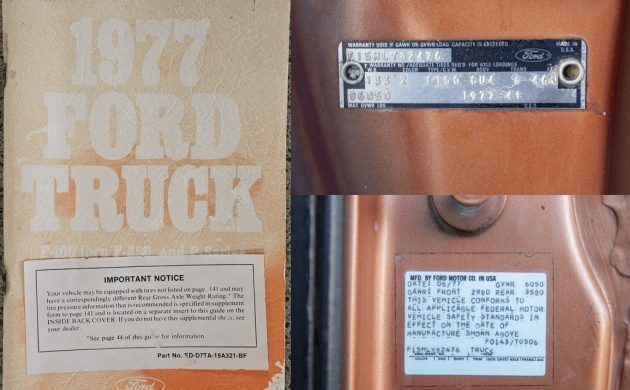 Sales catalogs for their 1977 pickups advertised the Ranger XLT trim level as “Ford’s finest!” As modern pickups get more luxurious, more capable, and more expensive, it might seem quaint that in 1977, this line topper’s luxuries includes such things we take for granted today: wall-to-wall carpeting, a vinyl headliner, “long-wearing cloth and vinyl seat upholstery,” intermittent windshield wipers, and even a day/night rear view mirror. But that’s the charm of driving a 48-year-old truck rather than a new one, and this F-150 will certainly grab more attention. It’s posted on eBay at a dealer in Pleasanton, California, as an 82,000-mile “Texas barn find” that has been cleaned up for sale, and the high bid currently sits at a paltry $2,550, which has unsurprisingly not met the reserve. But is this truck exactly as it seems to be?