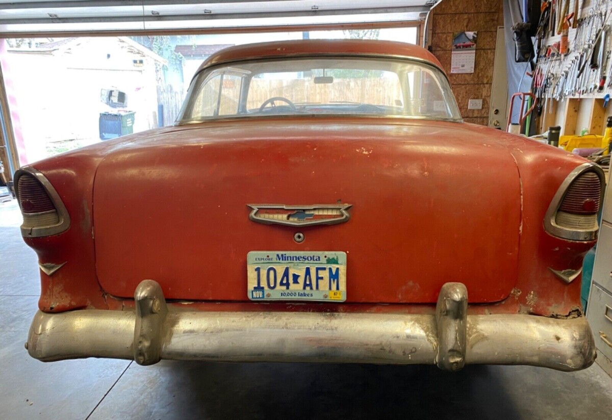 I bought a 55 2dr hardtop just like this in 1974 at the age of 18. Got my first bank loan to do it. Paid $1800 and got my first real hot rod. Came with a 69 vintage 427 out of a wrecked corvette. Had a Borg Warner super t-10 close ratio 4 speed. Put the power to the ground with a 57 Pontiac rear end with 4:11 gears. It was missing all the stainless trim so I had to buy another 55 for the trim. Paid $800 for the parts car and sold off the car in parts making a decent profit and getting my trim for nothing. There were no reproduction parts available then like there is now. My buddy and I did the body work using lead like in the old days……no Bondo. Painted the car satin black. Had the skinnies in front and the fat meats on the rear sporting Crater SS mag wheels. California license plate read ( 1fast55 ). Car would launch with the wheels up about a foot every time you romped on it. Rubber in any gear. It was pure heaven. What memories. Built…..not bought. Also in later years had a 56 panel and a 57 Nomad. Wish I still had the 55. Probably would have made it into a gasser with a straight axle and all the trimmings.