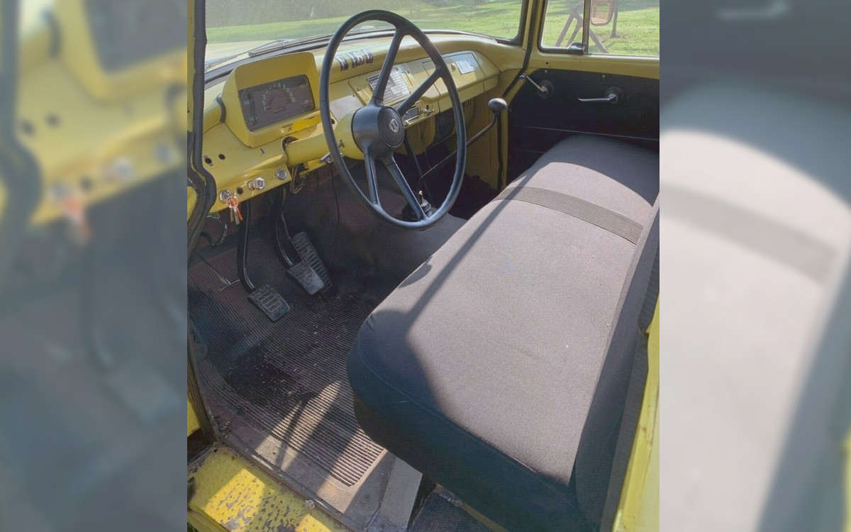 The seller got this truck several years ago and went through it to fix or replace everything that was needed while trying to keep it looking the same. It still has the original blue paint from its military days (Air Force I’m assuming) under the bright yellow from its time in South Dakota with the Forestry Department. They replaced the seat fabric both front and rear but other than that haven’t done too much else inside. They did replace both floor pans and did a lot of other work. It looks solid underneath. The bed also looks solid and I love those chunky brand new tires.