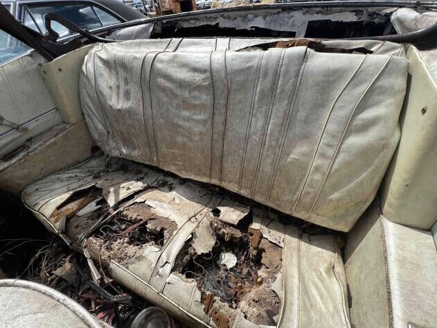 Under the hood should be a 327 cubic inch V8 which the seller has not attempted to start. It’s likely paired with a 2-speed Powerglide automatic transmission given the number of pedals. While the exterior itself is pretty rough, the interior has had a harder time as the top deteriorated leaving the passenger compartment exposed to who knows what. Interesting for a drop-top of this era is an under-the-dash air conditioning unit, though we don’t know if the compressor is still present. The car is being sold on “application for duplicate title” and the Impala is in non-Op status meaning no excessive back DMV fees will apply if the Chevy remains in California.