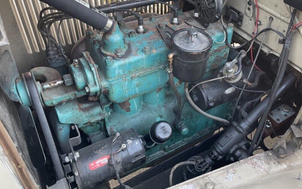 Under the hood is a 56 HP, 196 CI, in-line four-cylinder engine. The seller says that it runs but overheats right away in spite of a replaced water pump and a radiator that has experienced three flushes. If the radiator flows properly, top to bottom without obstruction, I’d suggest the problem is a stuck thermostat or a cooling passage blockage. As a backup, this early Mopar comes with a spare engine and three-speed manual transmission.