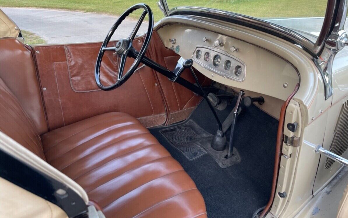 The interior, like the exterior, is still in excellent condition. I would expect some upholstery deterioration but there’s no sign of that in the passenger or rumble seat compartment. The condition continues with the carpet, door panels, kick panels, and clear instrument panel gauges. One of my favorite features of cars from this era is the “less is more” interior and dash layout – it is pure function.
