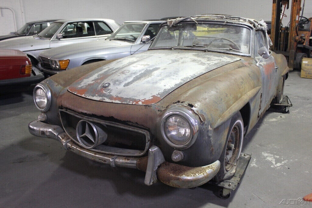 The Mercedes-Benz 190SL lived many years in the shadow of the 300SL, and then it began to tick up in value when collectors realized they were priced out of the gullwing game. The 190SL shown here is the sort of project that might not have been saved a decade or so ago, as it has extensive rust and a non-matching engine. These days, however, it’s fair game for restoration and is listed here on eBay with bids to $30,000 with the reserve unmet.