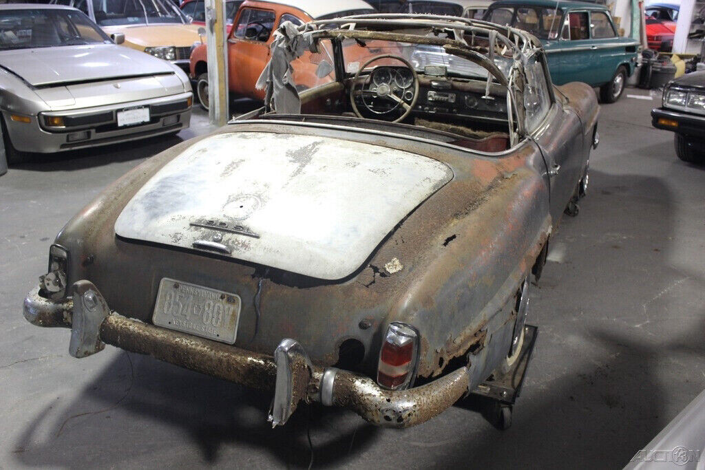 Now, this is not a vehicle I would personally spend $30K or more on, but I can understand bidders’ desire to get into a classic Mercedes model like the 190SL while prices are still somewhat reasonable. However, in addition to the prodigious amounts of rust, this 190SL is also sporting a non-matching engine, as the original mill failed and was replaced with one from a 180/B sedan, which certainly speaks to how these baby Benzes were perceived once a few years and a couple thousand miles had been racked up.