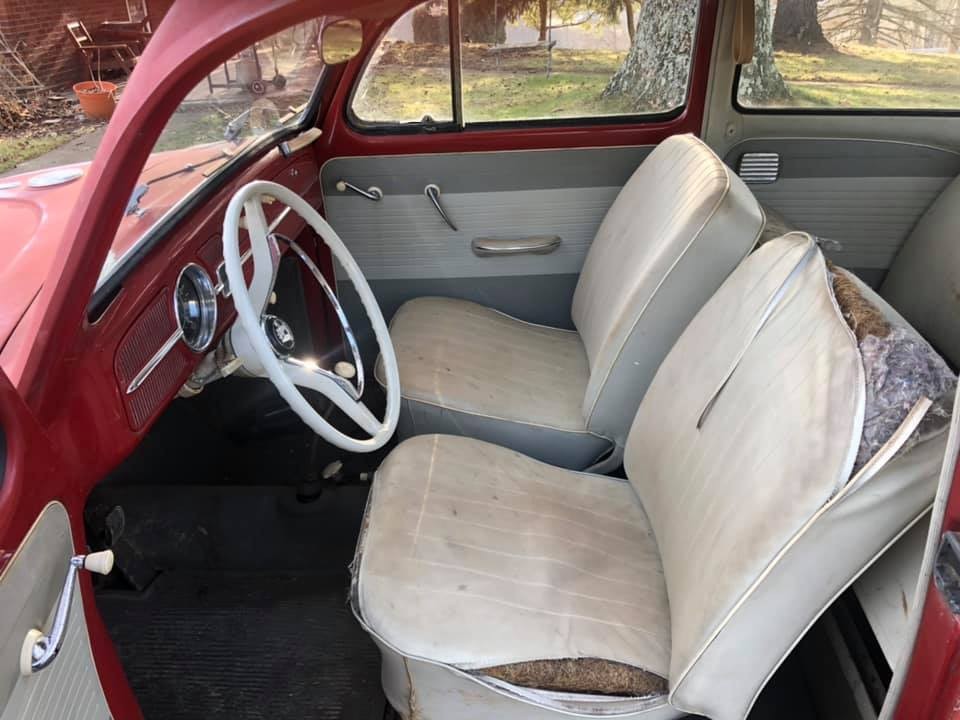 For those who enjoy a faded, patina look in an old car, this one has it in spades. You could leave it just as it is or put a fresh coat of red paint on the Beetle, Rust doesn’t seem to be an issue except there is a small hole in the battery pan and the lower plate on the frame head could stand replacing. The interior looks passable although the driver’s bucket seat should get reupholstered (or matching duct tape applied). Everything about this VW speaks “original” from the drivetrain right down to the radio-delete plate on the dashboard. These once-cheap-to-buy wheels are no longer that as Hagerty puts $50,000 as top dollar for one now in Concours condition, with “Good” being worth close to $15,000.