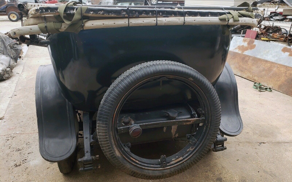 If we think back fifty years, that would have been 1971 and this car would have been fifty years old. Yes, if you didn’t notice it, this car is one-hundred years old right now. One hundred! That’s pretty amazing if you think about it. It sure doesn’t look like it’s that old in the photos, other than the tires and wheels. The tires are easy to replace and the wheels absolutely have to be gone through by an expert to make sure that they’re safe when this car hits the road again, which it undoubtedly will. I prefer disc wheels just for safety reasons, but there’s something about wood-spoke wheels that is really interesting and historic.
