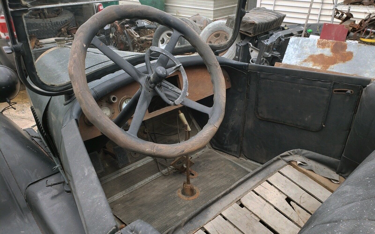 The Series 43-A was also known as the Oldsmobile Four and it was the last four-cylinder car offered by Oldsmobile until the Starfire in the mid-1970s! It’s a 192 cubic-inch inline-four with 35 to 40 horsepower and this one turns over but the seller hasn’t tried to start it. I think that the options for restoring this one include: 1) A full restoration. 2) A partial restoration of wheels, seats, dash, gauges, engine, and safety systems. 3) Just get it working, preserve as much as possible, and drive it as is. I’d choose the middle option, which route would you go with this Olds?