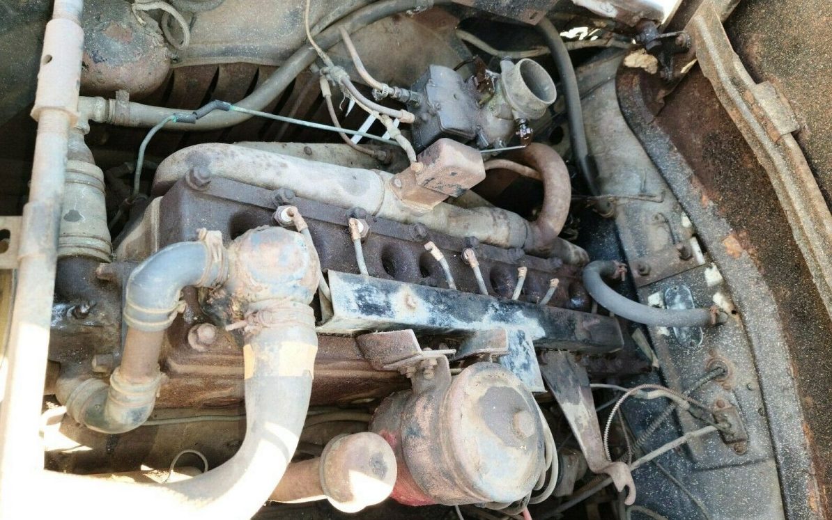 “Does that got a Hemi’ in it?” Well, no, but it’s got eight cylinders, one for each black hole on the head of the inline eight. Hopefully, the spark plugs were only recently removed, but I wouldn’t bet on it. Other than the missing air cleaner housing, it looks fairly original.