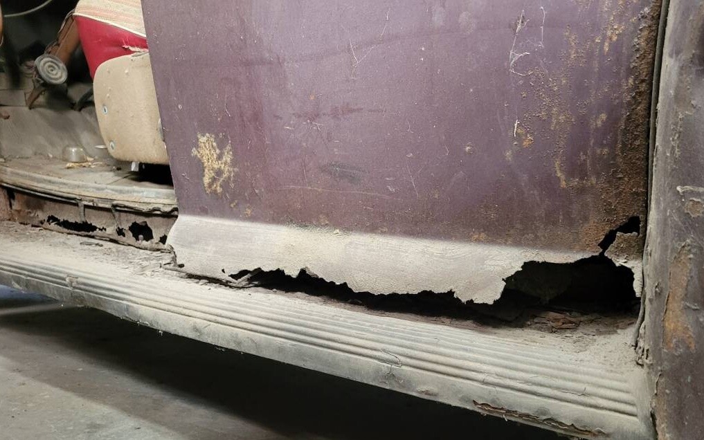 In those 5 decades, the car was not moved again or started, and the seller mentions that mice did not get to it. But some rust rats must have gnawed on it before it was parked, as there is corrosion present, most noticeable under the doors and in some of the lower panels. Fortunately, from the parts we can see underneath, a lot of the rust on the south side seems to be mostly on the surface, so maybe the worst of it is on the body and not the frame. But if the Ford was on the road in New Hampshire for 18 years before it was taken off, I’d probably investigate closely and make sure the components down below are structurally sound before beginning my refreshment.