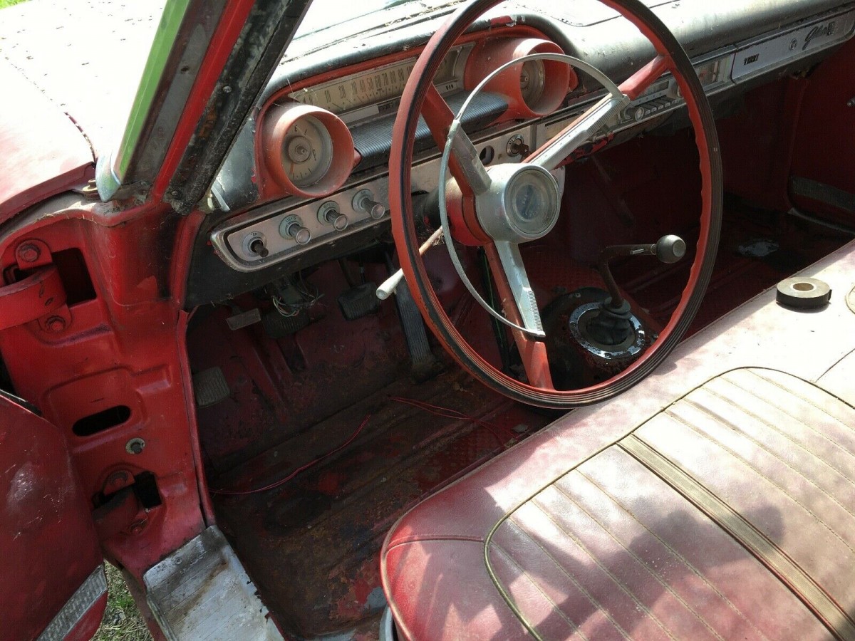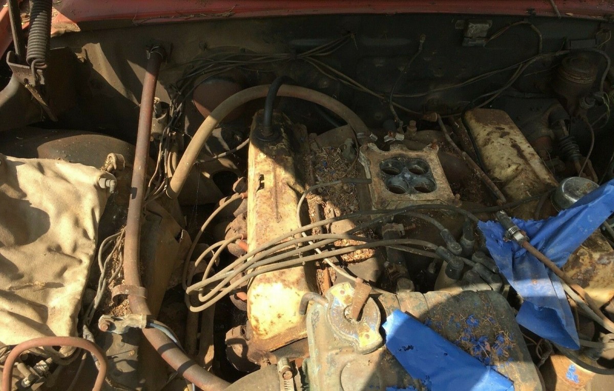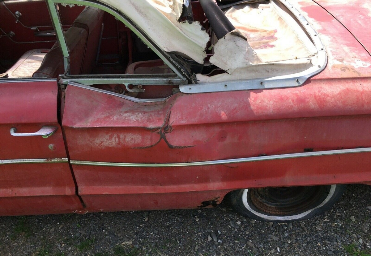 We’re told this car has spent the last 50 years in a pole barn, so time and Mother Nature have been unkind. The Ford experienced a big crunch on the driver’s side right below the passenger window, so a new rear quarter panel will be needed. While the photos we see show a crusty undercarriage, we don’t see gaping holes although the seller says the floors and trunk are going to need some patches.