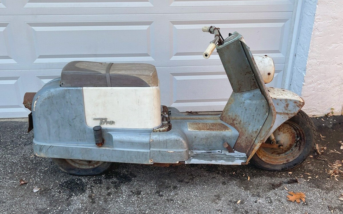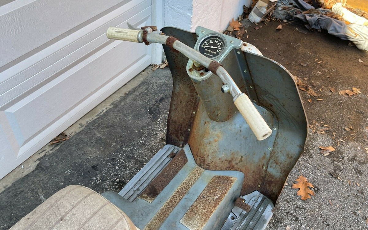 There are no engine photos but as I mentioned, it should have a 165 cc two-stroke air-cooled single and obviously, this one isn’t in running condition. We don’t know the story here but the seller says that it was parked in 1961 and there is no title and that’s basically it. Check out the photos and let us know if you would give this Topper a full restoration or get it working and drive it as looks now, or neither.