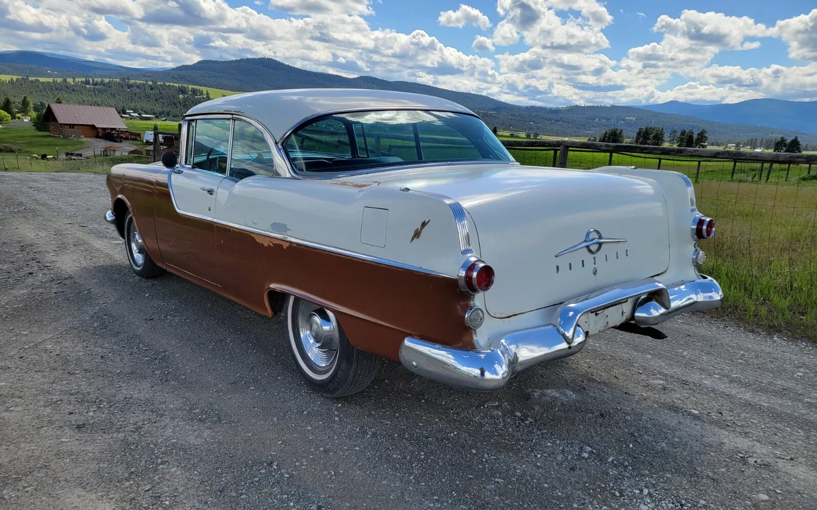 Nice Pontiac. The 1955 & 1956 Pontiac were the practically the same car. Knew a family that had two 1955s, 2 door hardtops, the wife’s car was green & white, the husband’s was red & white, purchased both at the same time.