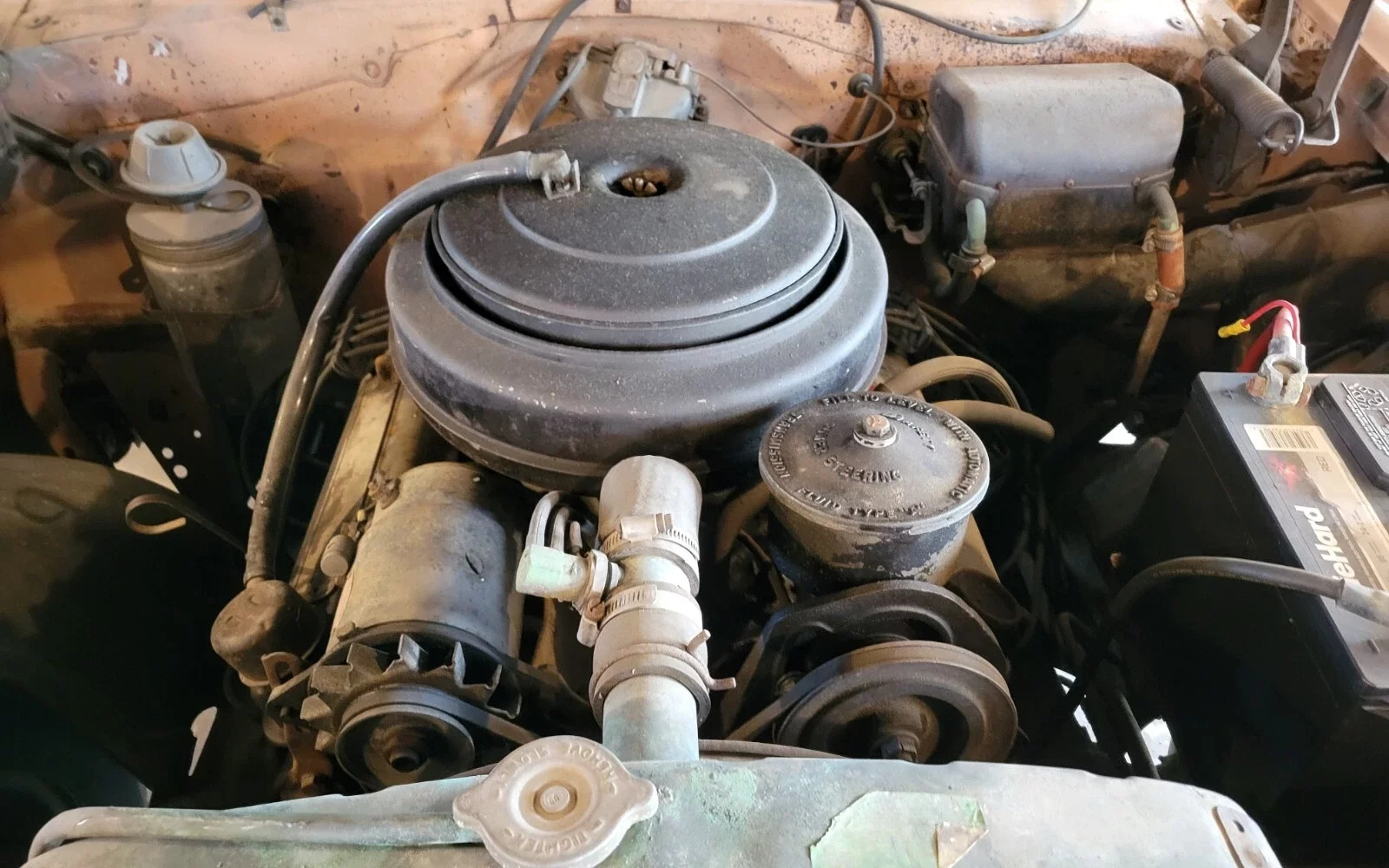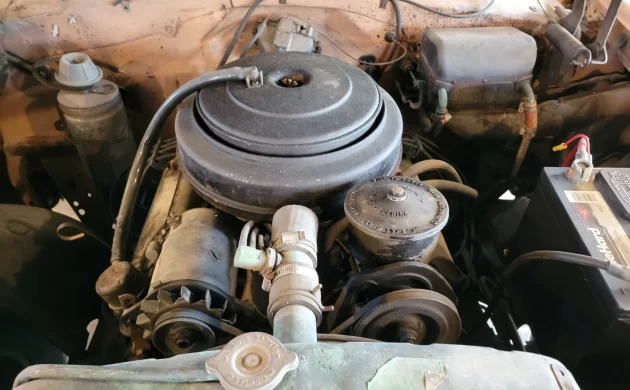 As an aside, it appears that someone has installed a crankcase ventilation hose from the breather to the air cleaner, which is not uncommon to see when an engine gets a few miles on it. The odometer reads 75,675, which may be accurate given the car’s long hibernation, and we must remember that a 75,000-mile car was often just about worn out in the 1950s. Times have definitely changed our perspective on mileage.