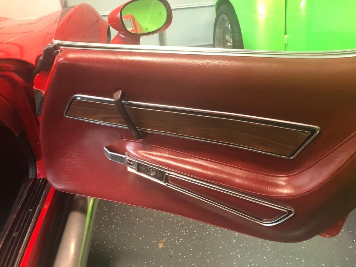 Under the hood is the numbers-matching 350ci L82 engine, which is backed by an automatic transmission. Things aren’t all original under the hood, with a good dusting of Mr. Edelbrock’s products visible, along with an MSD distributor, and aftermarket headers. For a car of this age that has been sitting in a barn for 10-years or more, the condition looks pretty reasonable, although I really do hate the use of the detailing spray on the hoses, especially when it is pretty obvious that the hoses haven’t been sprayed all the way to the end. The owner does say that the car starts and runs well, but that it should have a tune-up and an alignment before it hits the road. The owner has also fitted new BF Goodrich tires all around.