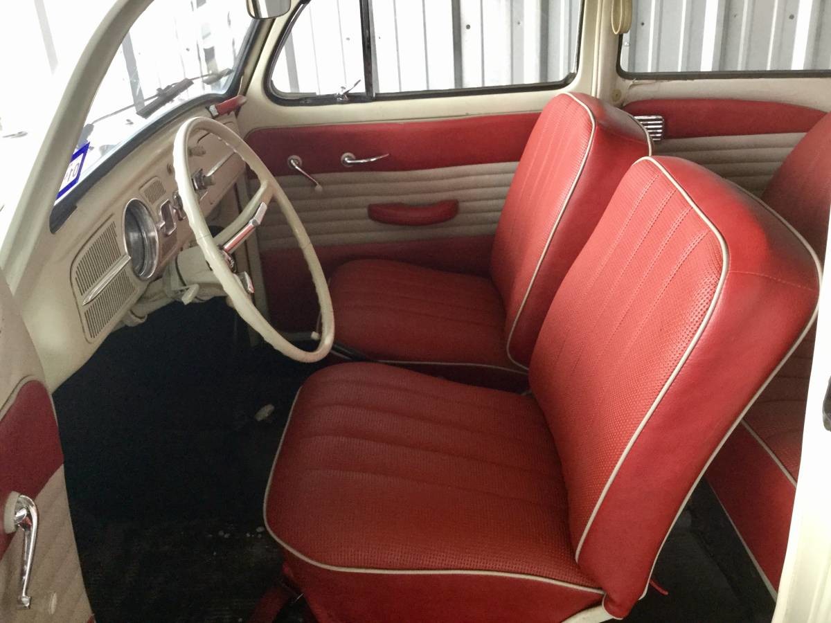 My parents bought a 1960 brand new in Germany, drove/ferried it to Sweden and put it on a boat to California. My first car was also a Beetle and also a 1964, but with that sweet fabric pull back full size sunroof. Now back in the day, I could identify every year of Beetle no matter how small the change was from the previous year. Such as ’67 (backup lights), ’68 (new tail lights with integrated backup lights), ’66 (the 1600 badge), etc. What has me puzzled is I believe it has the wrong license plate light and wrong front turn signals. My ’64 had the narrow clear turns and if I remember correctly, they didn’t change to the wide amber ones until the tail lights changed in ’68. Also, my ’64 had the narrow ‘Jimmy Durante nose’ looking rear license plate light, not this wide one which I think was a ’65 or ’66 change. Again, this was 50+ years ago so I may be incorrect. Just didn’t look right to me.