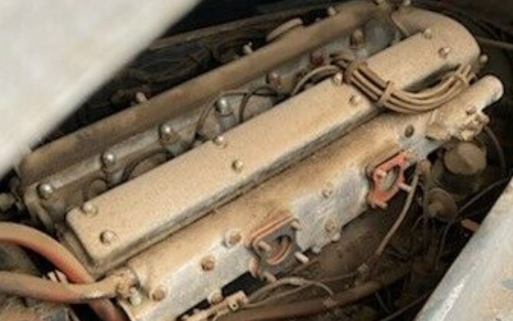 This XK120 is a “SE” (Special Equipment) model which includes a more powerful version of the 3.4-liter inline six-cylinder engine, generating 180 HP and exhaling through a dual exhaust system. Of course, this Jag isn’t going any exhaling because it isn’t doing any inhaling – the carburetors are in a box. So is the engine usable? Don’t know, the seller is silent on that front. This is a 34K mile example, so if there is serious engine damage it’s probably from sitting for so long without being turned over or started. I do wonder why the carbs were removed, however.