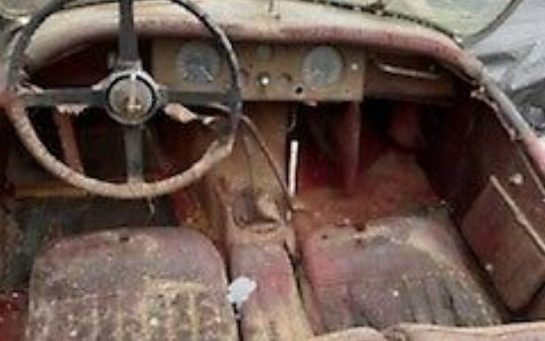 As for the interior, it leaves me speechless – it looks like a biology experiment that has gone awry (sorry for the fuzziness of the image). It would seem to have been left out in the weather but it is trashed and will need a major redo, everything, seats, dash, instrument panel, steering wheel. We’ll go with the assumption based on the seller’s statements and underside images that the floors are sound.