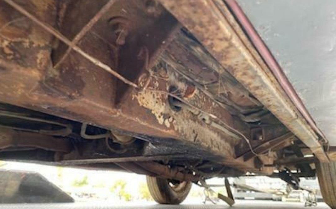 The underside has a lot of surface rust but apparently, none of it is at the rot-through stage. The fame and its various supports and cross members appear to be pretty stout and that’s a notable feat for this era British car. Of course, Arizona’s climate has helped with the cause.