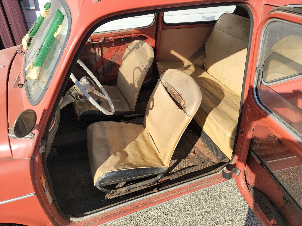 It seems that the storage environment for this little Fiat must have been close to ideal. While the original Red paint looks tired, the news generally looks to be positive. The panels have accumulated a few dings and dents, but there’s nothing particularly bad for the buyer to tackle. However, the most important news surrounds the slippery slope that can be rust repairs. Well, put down the welder and grinder because it seems that this Italian classic is rust-free. There is nothing visible externally, and the seller describes the vehicle as being solid. Since the Fiat has been sitting for fifty years, the next owner will probably decide to dismantle the car entirely to service everything thoroughly and restore the interior. That would present the perfect opportunity to media-blast the body so that they could utilize some modern rust preventative products for preserving the steel indefinitely. A previous owner removed some of the trim, but it all appears to be present and in a restorable state. There are no problems with the glass, and the overall impression is that whipping the panels and paint into shape should not be difficult.