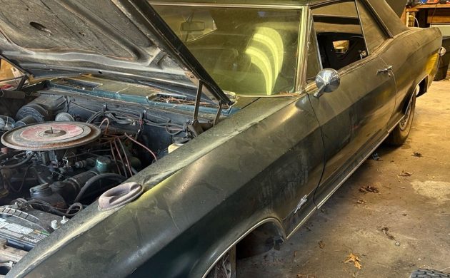 Inside, listed details about the interior’s current condition are sparse, but based on the car’s long dormancy, some level of reupholstering or refurbishment should be expected, especially looking through the current pictures. Original materials and trim pieces on a ’65 Riviera are worth preserving wherever possible, as this was a high-spec model known for its upscale appointments and Jet Age dashboard design. The clamshell-style hidden headlights, unique to the 1965 model year, are among its most sought-after features.