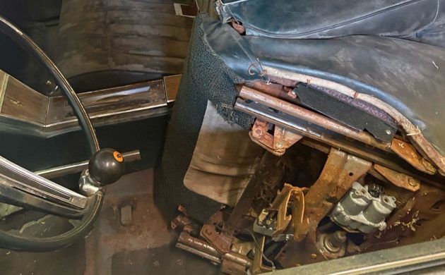 My ’63 Riv was in similar condition (though not running/driving) when I paid 6K back six years ago. But mine was a Florida car, so the underside is squeaky-clean. This car doesn’t show any body rust, but the grime on the car could be obscuring body repairs, and the stance in the driveway is concerning.