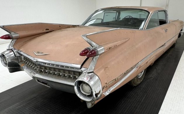 Is any other car a better representative of 1950s America than the 1959 Cadillac? It was born in the crucible formed by Harley Earl’s retirement and Bill Mitchell’s ascendency. Its fins were the tallest ever to grace a rear end. Chrome was crammed into every corner. And it was the last of its kind. This example has its warts, particularly a profound case of rust infestation. But it may yet provide parts to a more worthy candidate. It is listed here on eBay, enjoying frisky bidding that has brought the price to $7500, reserve not met. Eager beavers can shortcut the auction using buy-it-now, which will cost $11,901 (not a typo!). Does this Series 62 have enough merits to breach the reserve?